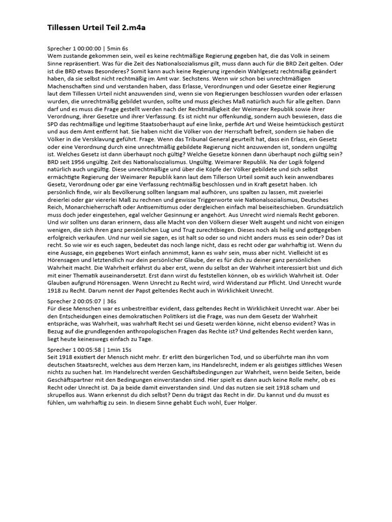 ermächtigte Regierung der Weimarer Republik kann laut dem Tillerson Urteil somit auch kein anwendbares