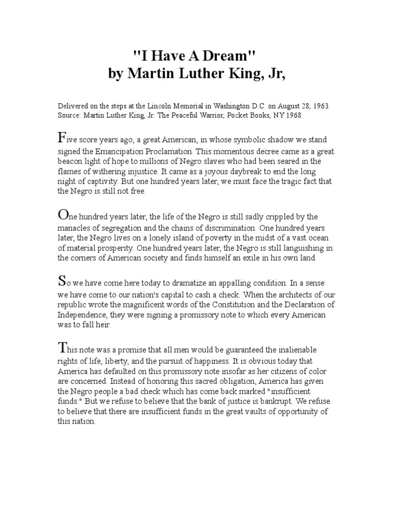 I have a dream that one day this nation will rise up and live out the true