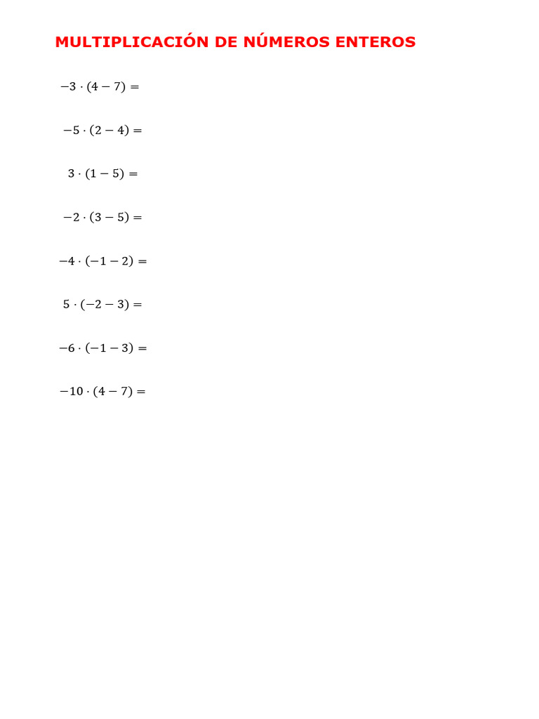 MULTIPLICACIÓN DE NÚMEROS ENTEROS
