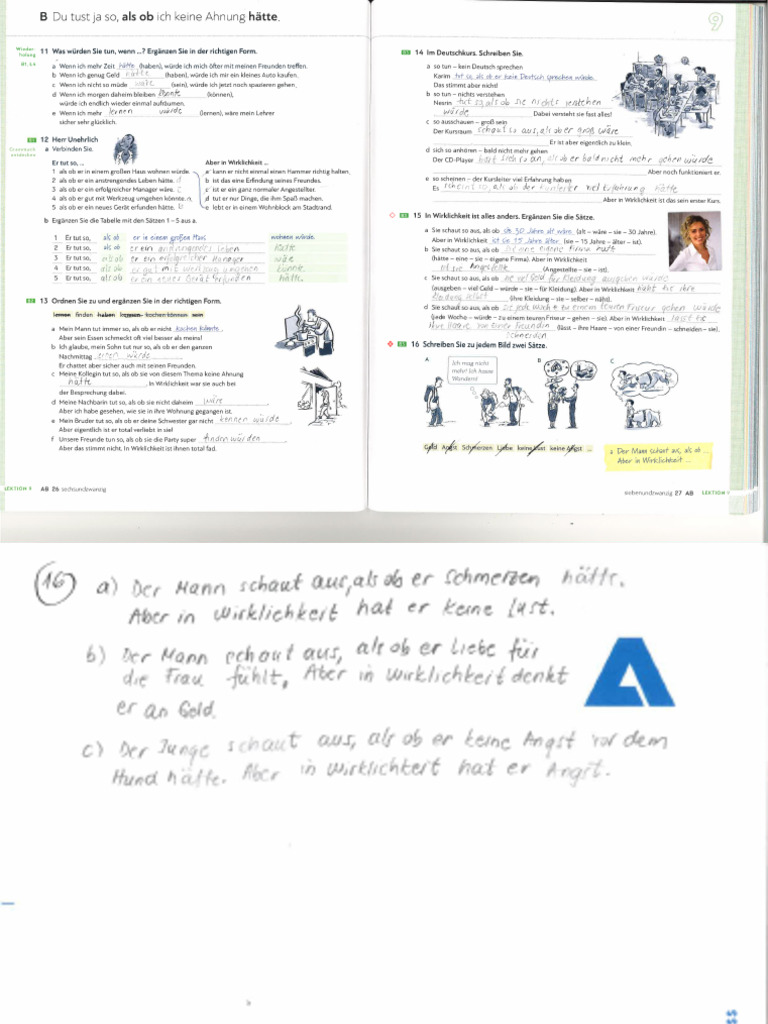 b lch glaube, mein Sohn tut nur so, als ob er den ganzen €. g 16 Schreiben Sie zu jedem Bild zwei Sätze