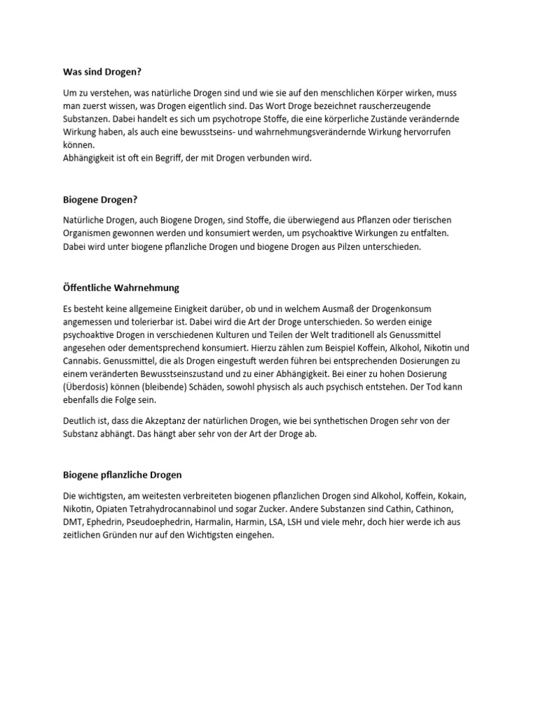 Dabei wird unter biogene pflanzliche Drogen und biogene Drogen aus Pilzen unterschieden.