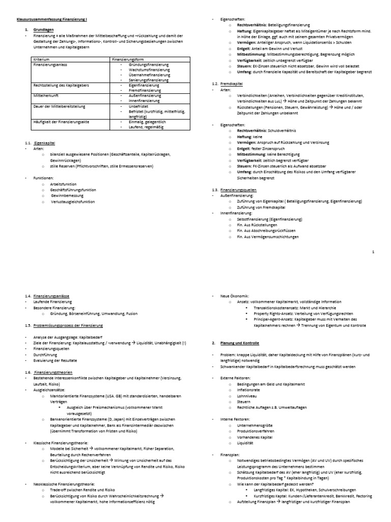 o Geschäftsführungsfunktion 1.3. Finanzierungsquellen