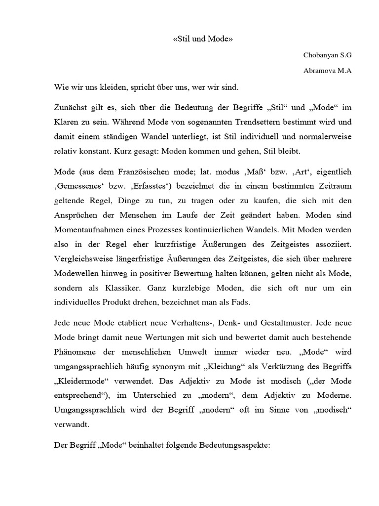 Zunächst gilt es, sich über die Bedeutung der Begriffe „Stil“ und „Mode“ im