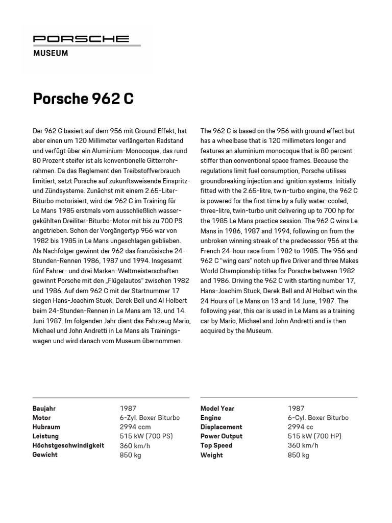und Zündsysteme. Zunächst mit einem 2.65-Liter- fitted with the 2.65-litre, twin-turbo engine, the 962 C