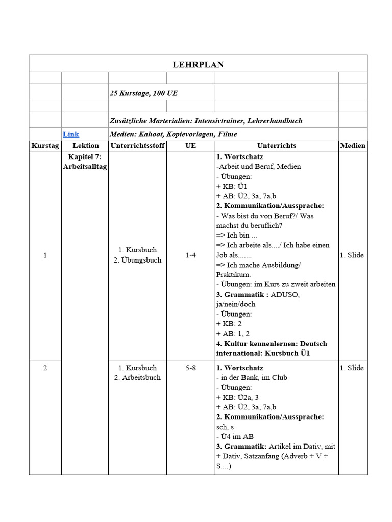Kurstag Lektion Unterrichtsstoff UE Unterrichts Medien
