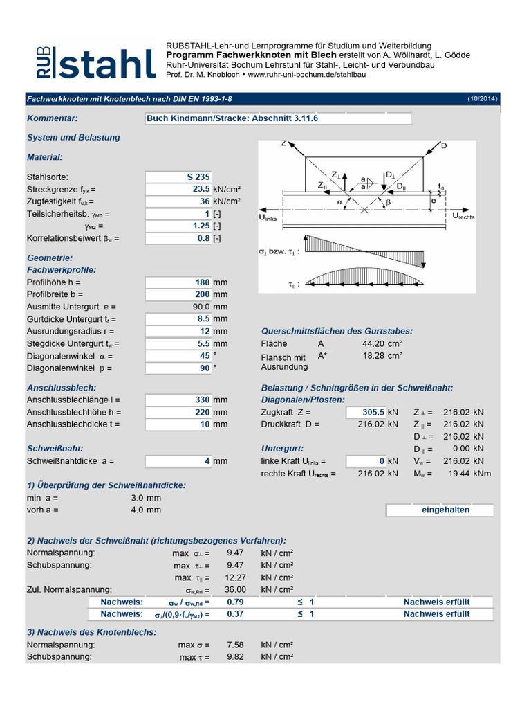 Programm Fachwerkknoten mit Blech erstellt von A. Wöllhardt, L. Gödde
