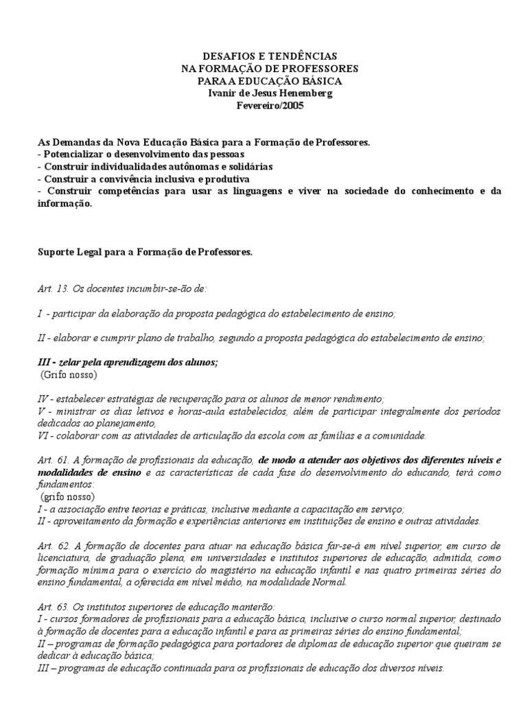 Art. 61. A formação de profissionais da educação, de modo a atender aos objetivos dos diferentes níveis e
