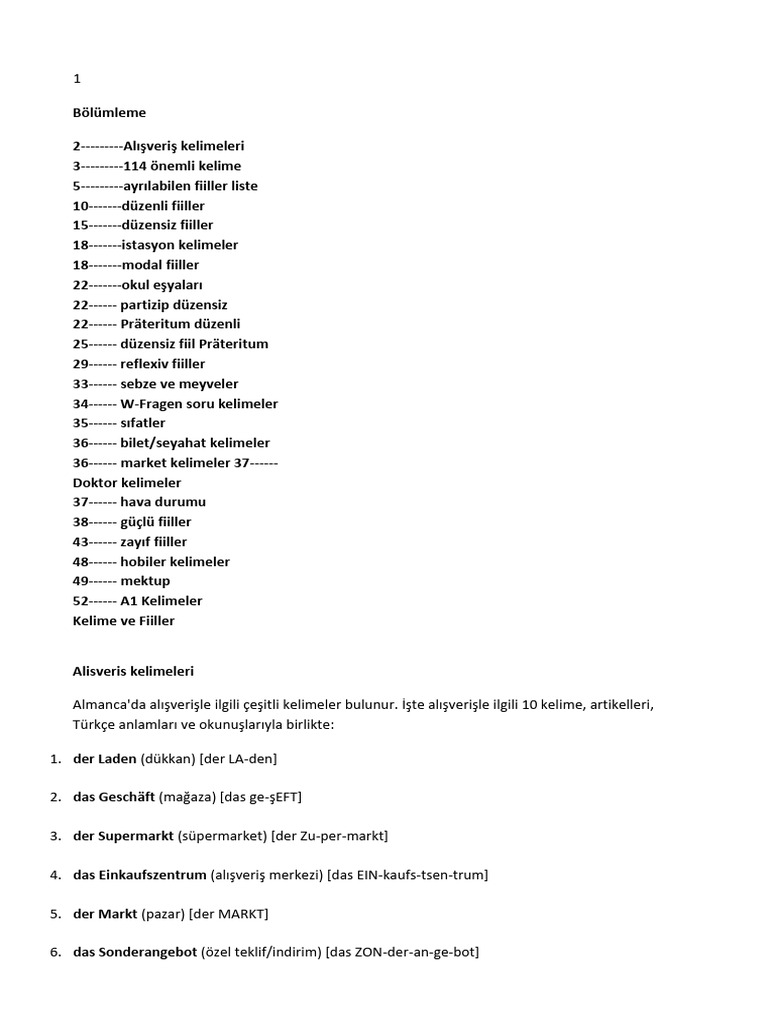 Almanca Kelimeler