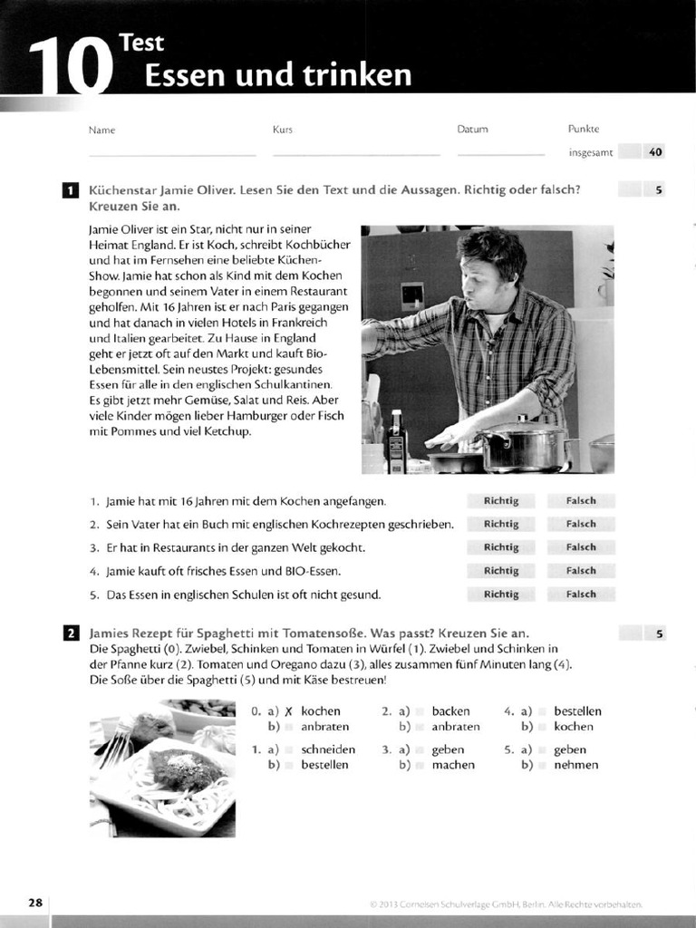 1. Jamie hat mit 16 Jahren mit dem Kochen angefangen. Richtig Falsch