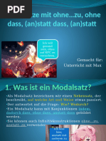 Ohne dass / ohne …zu… Neg. Modalangabe: Ohne + Akk.