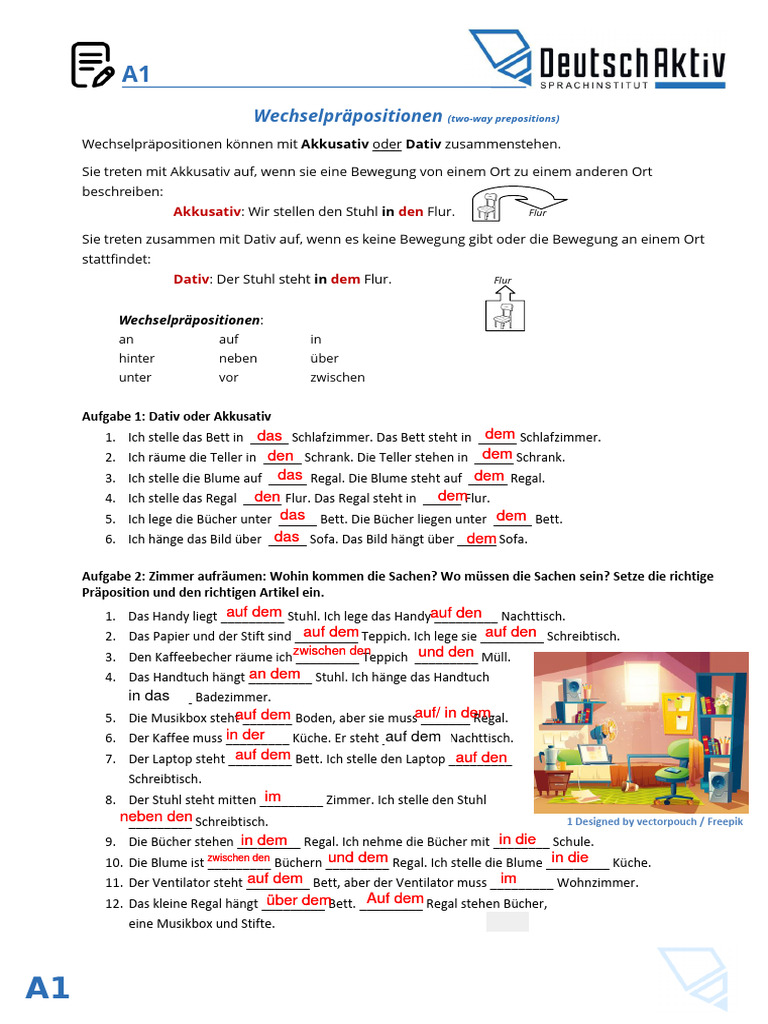 Wechselpräpositionen können mit Akkusativ oder Dativ zusammenstehen.
