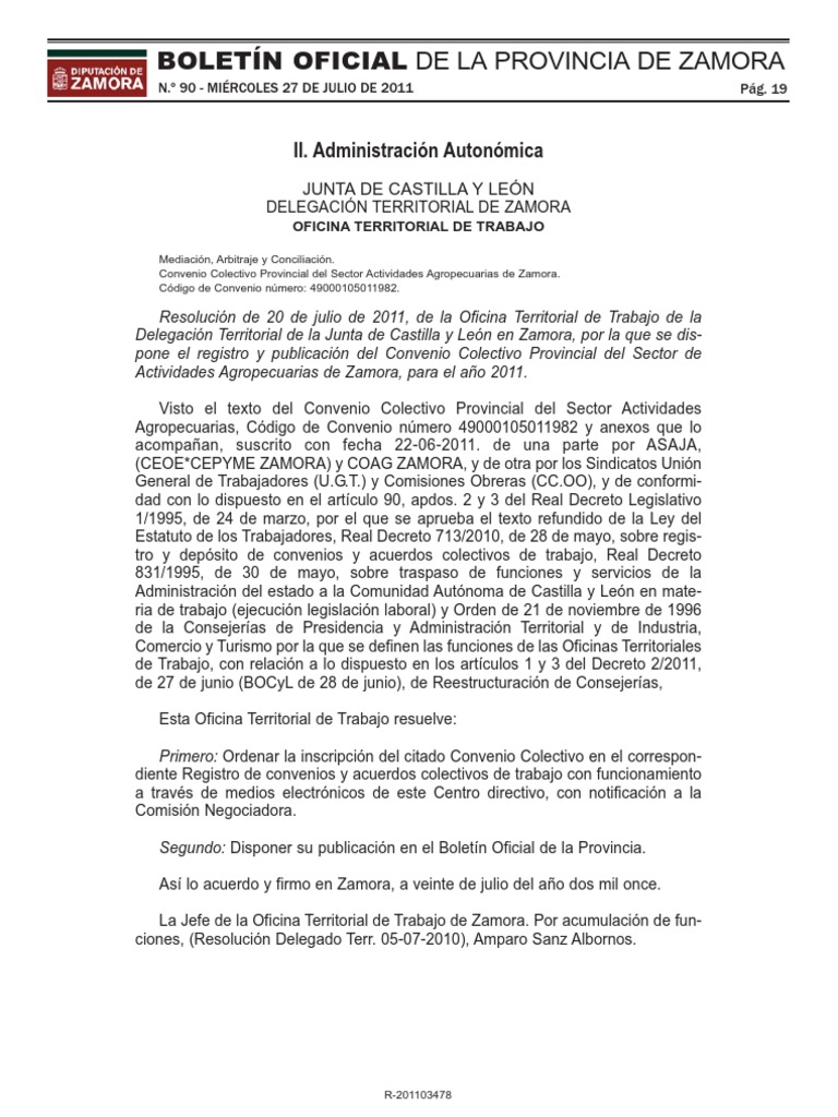 Convenio Colectivo Provincial del Sector Actividades Agropecuarias de Zamora.