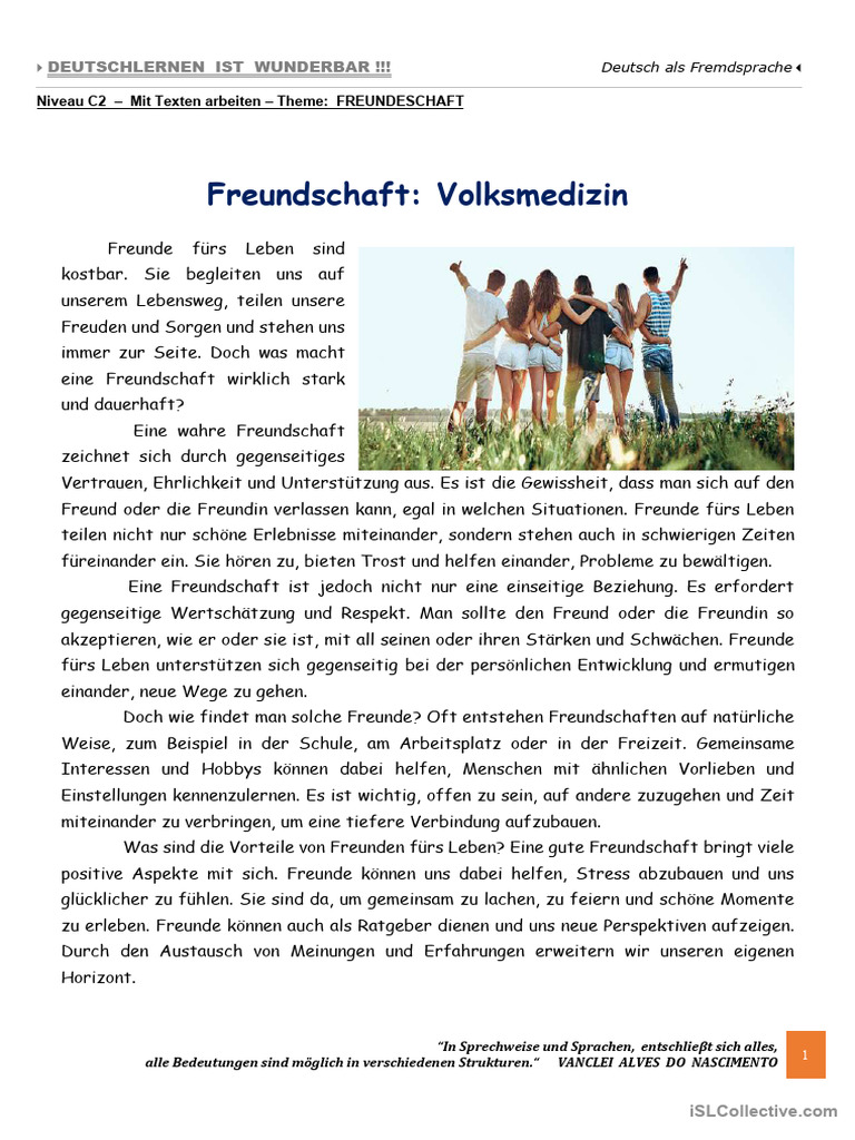 Niveau C2 – Mit Texten arbeiten – Theme: FREUNDESCHAFT