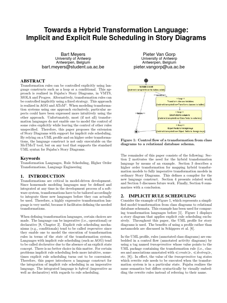 When defining transformation languages, certain choices are a story diagram that applies explicit rule scheduling exclu-
