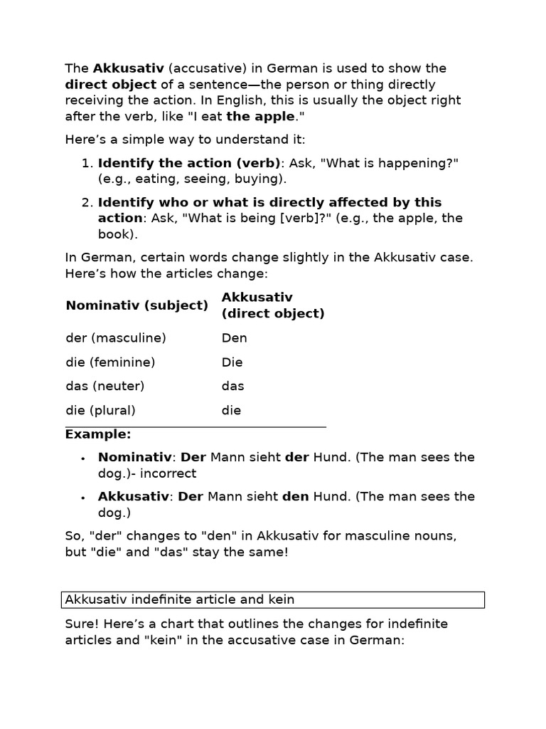 Akkusativ case - the case of the object