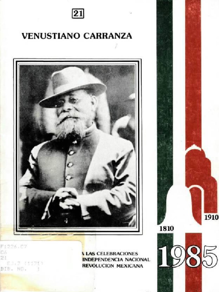 Benitez, Fernando. El rey viejo. Mexico, F'CF, 1976. Casasola, Gustavo. Biografla Ilustrada de Don Venustiano Carranza. Mexico, Edicion del autor, 1974. COrdova. Arnaldo. La ideologia de la Revolucion Mexicana. Mexico. Era, 1976. Cumberland, Charles. En el primer gobierno con stituci on at. Mexico. Siglo XXI Editores, 1981. Katz. Friedrich. La guerra secreta en Mexico. Mexico, Era, 1982, 2 volmenes. Quiroz Flores, Sonia. La Rebelion de Agua Prieta. Mexico, UNAM, 1984. (Col. "Nuestro Mexico" 10.) Silva Herzog, Jesus. Breve F-f istoria de la Revolucion Mexicana. Mexico, n:E. 1973, 2 volrnenes. Ulloa. Bertha. Historia de Ia Revolucion Mexicana. Mexico, El Colegio de Mexico. 1976, vols. 4 y 5. Urquizo, L. Francisco. Venustiano Carranza. Mexico, Comisin Nacional Editorial del PHI. 1976 (edicion facsimilar de 1936).