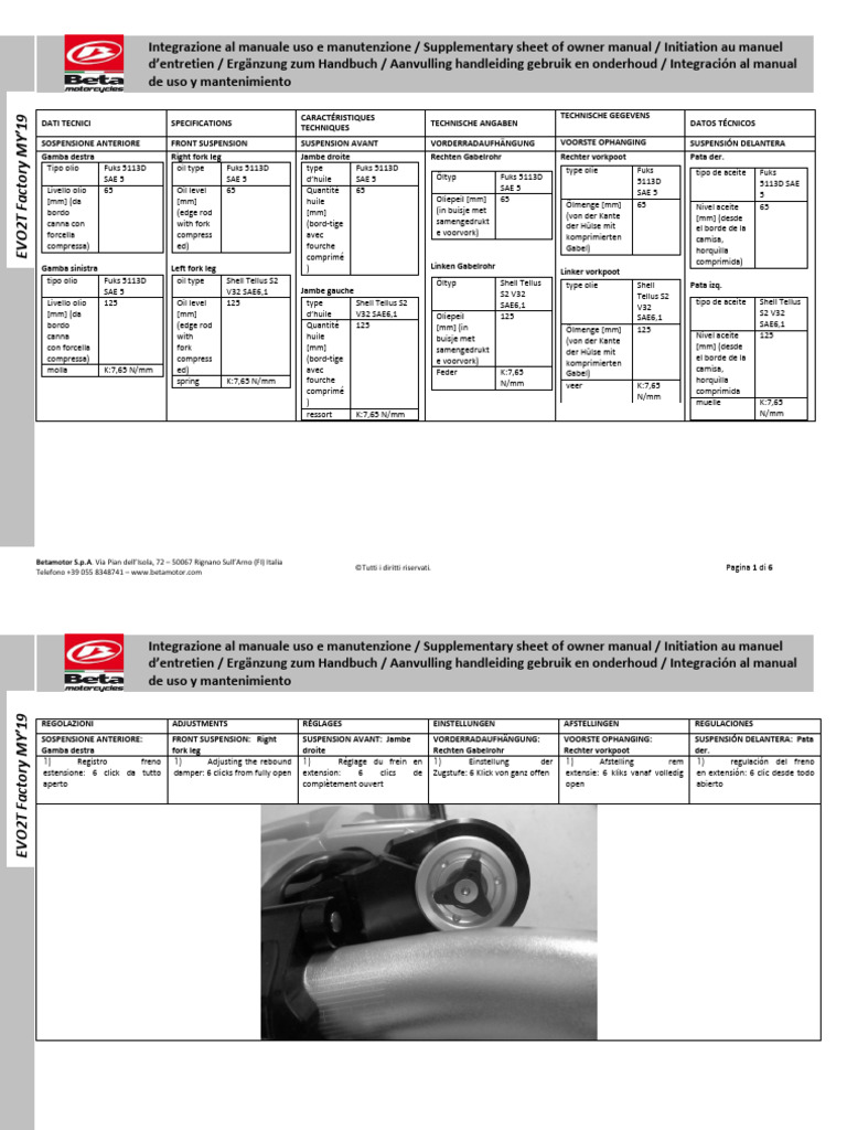 Manual Supplement Sheet I EVO 2T Factory 2019