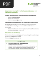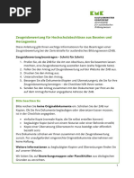 Notenübersicht der vorherigen Hochschule ebenfalls ein.