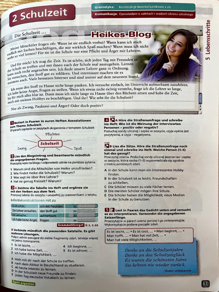 2 Wie findet Heike die Schulzeit? Warum? finden.