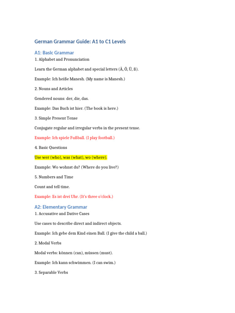 German Grammar Guide: A1 to C1 Levels