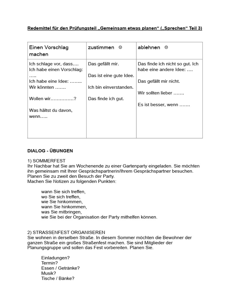 Redemittel für den Prüfungsteil „Gemeinsam etwas planen“ („Sprechen“ Teil 3)