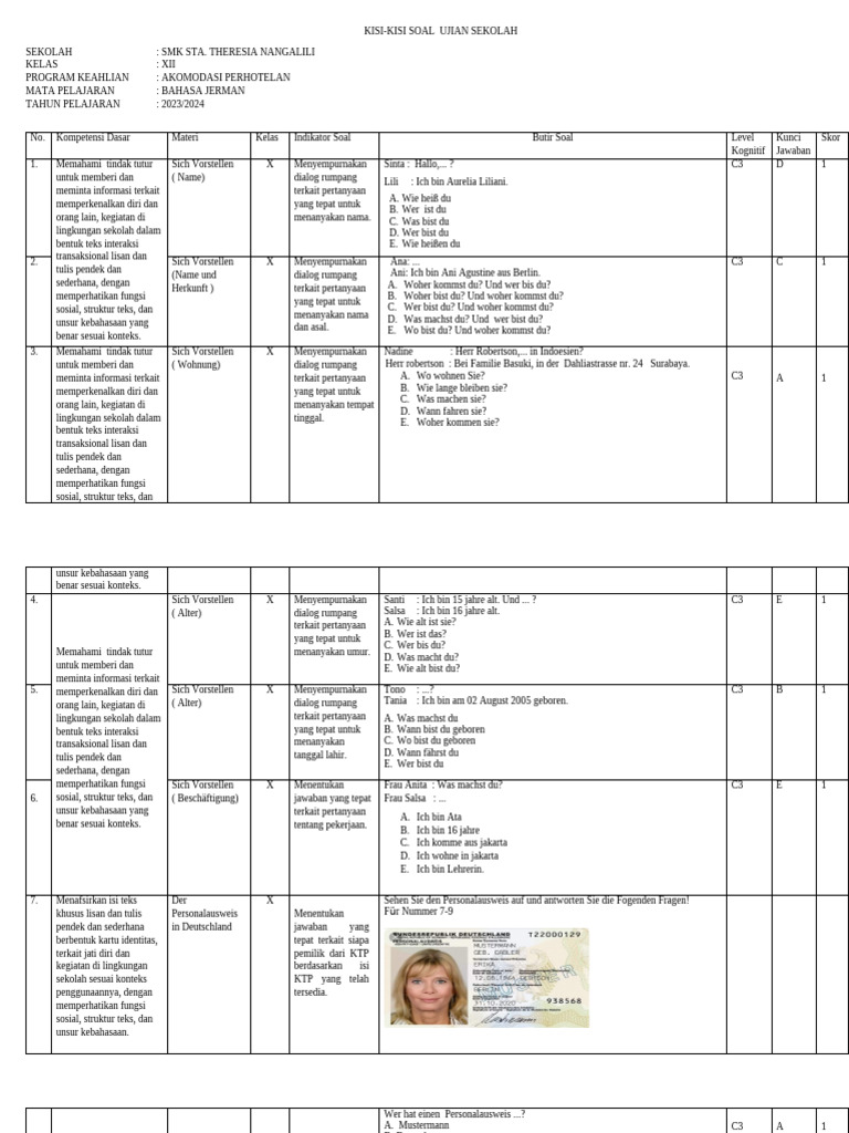 7. Menafsirkan isi teks Der X Sehen Sie den Personalausweis auf und antworten Sie die Fogenden Fragen!