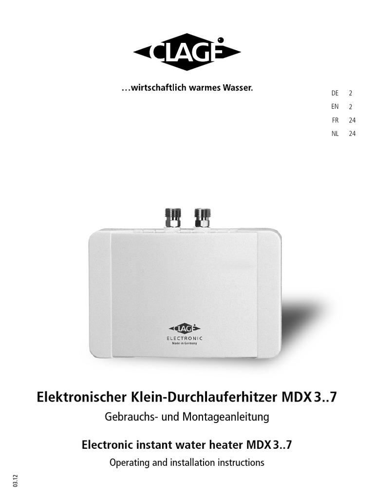 température maximale de l‘eau chaude (°C) ≤ 50 °C watertemperatuur (°C) ≤ 50 °C 2) De elektriciteit moet worden aangesloten