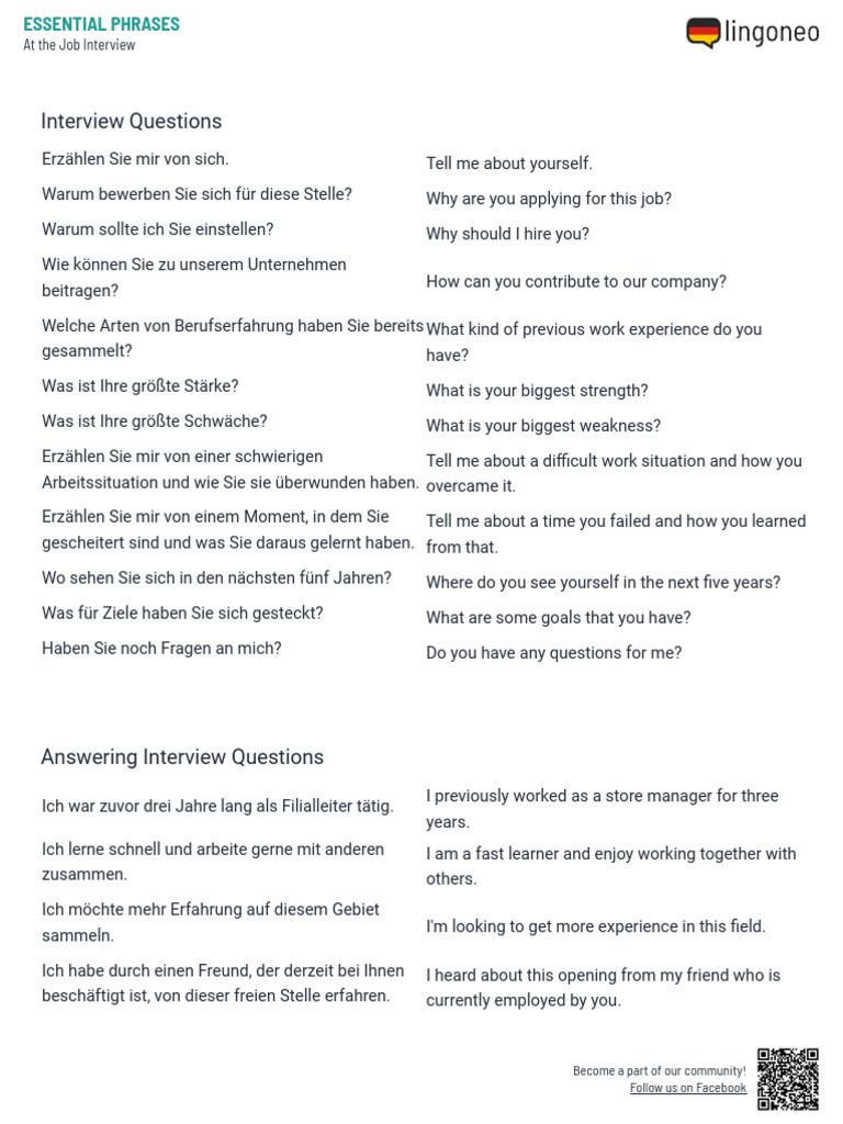Wo sehen Sie sich in den nächsten fünf Jahren? Where do you see yourself in the next five years?