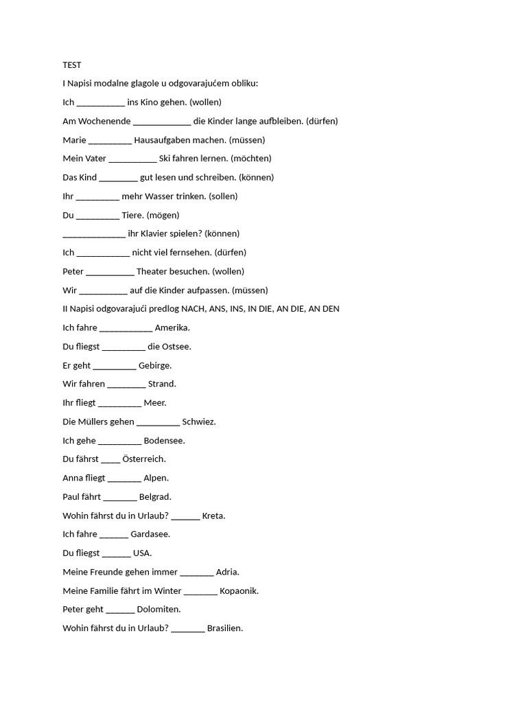II Napisi odgovarajući predlog NACH, ANS, INS, IN DIE, AN DIE, AN DEN