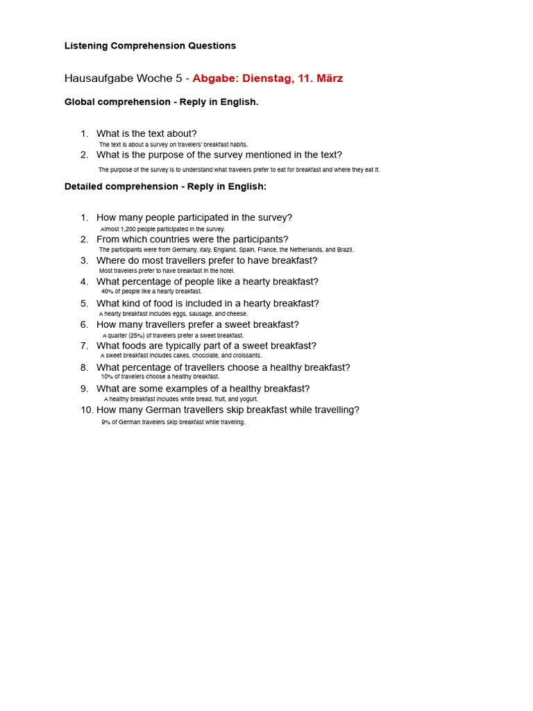 Listening Comprehension Questions