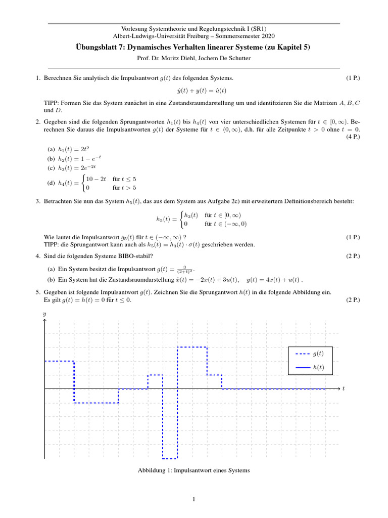 Übungsblatt 7: Dynamisches Verhalten linearer Systeme (zu Kapitel 5)
