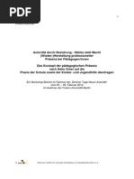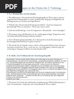 Nehmen Sie aus Sicht von Erikson Stellung zu den Erziehungsvorstellungen des Autors. Nach Erikson, Vertreter der epigenetischen Sichtweise, kann die Erziehungsvorstellung von Bernhard nicht untersttzt werden. Auch wenn die Autonomie nicht die erste Phase ist, stellt es doch einen bedeutenden Fortschritt dar, dass angenommen wird, dass alle Phasen auch vor ihren Spezifisch-werden eine Rolle spielen. Mit diesem Verstndnis lsst sich der Konflikt zwischen Entwicklungsbedrfnissen und gesellschaftlichen Anforderungen aufzeigen (Z. 23 f.). Entwicklungsbedrfnisse mssen erfllt und befriedigt werden um die jeweilige Phase in der Entwicklung erfolgreich abzuschlieen. Die Gesellschaft aber wirkt mit ihren Anforderungen dagegen. Deswegen ist der Ansatz Bernhards nicht ganz schlssig, dass auf Autonomie hingearbeitet werden soll, aber gleichzeitig Zwang und Vorschriften der Eltern bzw. der Gesellschaft den wesentlichen Teil beanspruchen (Z. 25, 40 ff.). Andererseits ist zur Erziehung einer Ich-Identitt oder auch Ich-Strke von Nten, dass dem Kind Mglichkeiten gegeben werden, sich und seine Bedrfnisse in akzeptierter Form (von der Gesellschaft akzeptiert) ausdrcken und ausleben zu knnen, da es sonst zu psychischen Strungen kommen kann. Doch knnen diese Kompetenzen (Z. 12) nur ber die Erziehung vermittelt werden, die schlielich durch die Erwartungen der Gesellschaft als auch durch die Bestimmung der Eltern fremdbestimmt ist (vgl. 4446). Die Auffassung Bernhards, dass das Kind im frhen Stadium der Entwicklung weniger gestalterischen Einfluss nimmt (Z. 31 ff.) lsst sich mit Eriksons Modell soweit besttigen, dass die Entwicklung von Autonomie und Werksinn usw. erst in spteren Lebensabschnitten spezifisch wird. Allerdings muss das Individuum fr ein gesundes Selbstbild (Identitt) ein stndiges Selbst wahrnehmen knnen. D.h. es darf sich nicht von anderen herumgeschubst fhlen, obwohl es Normen der Gesellschaft bernimmt. Dieser Aspekt wird in Bernhards Erziehungsvorstellung nicht umgesetzt. Der Mensch ist stndig fremdbestimmt u. kontrolliert durch ein Machtsystem.