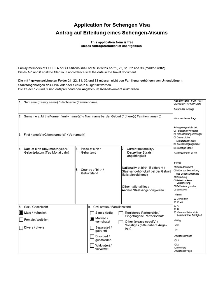 Male / männlich Single /ledig Registered Partnership / Visum mit räumlich