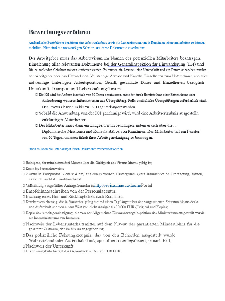 Ausländische Staatsbürger benötigen eine Arbeitserlaubnis sowie ein Langzeitvisum, um in Rumänien leben und arbeiten zu können.