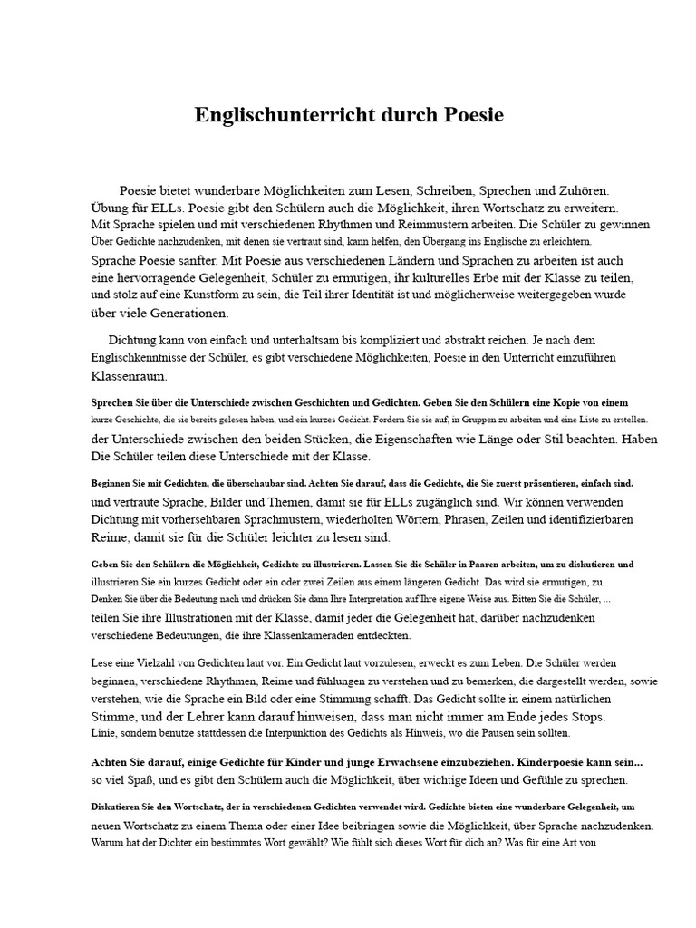 Englischkenntnisse der Schüler, es gibt verschiedene Möglichkeiten, Poesie in den Unterricht einzuführen