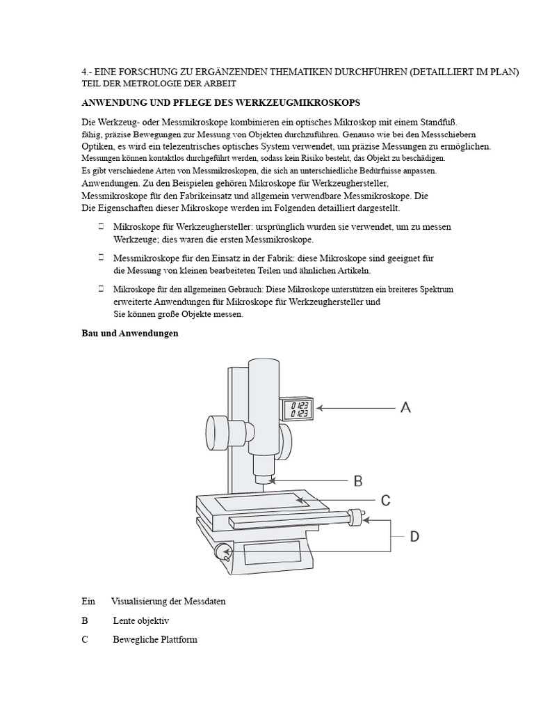 Ähnlich wie bei allgemeinen Mikroskopen müssen die Messmikroskope verwendet werden in