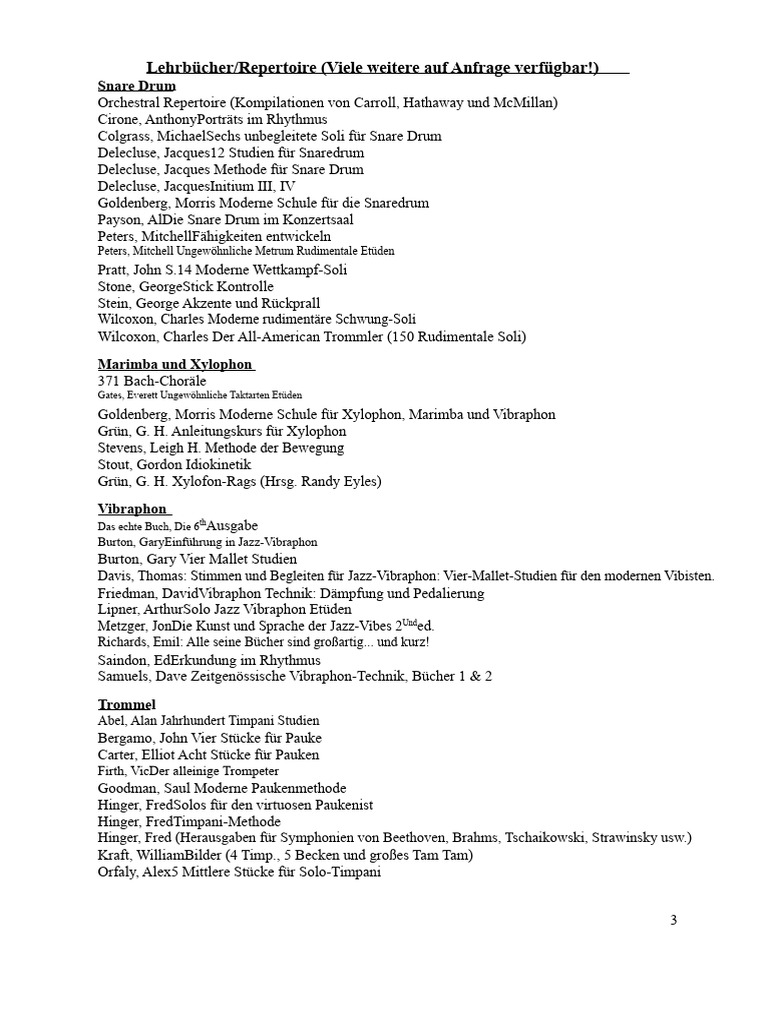 Empfohlene Solo-Marimba-Literatur