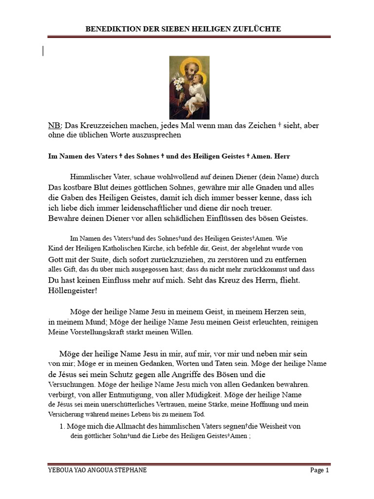 Himmlischer Vater, schaue wohlwollend auf deinen Diener (dein Name) durch