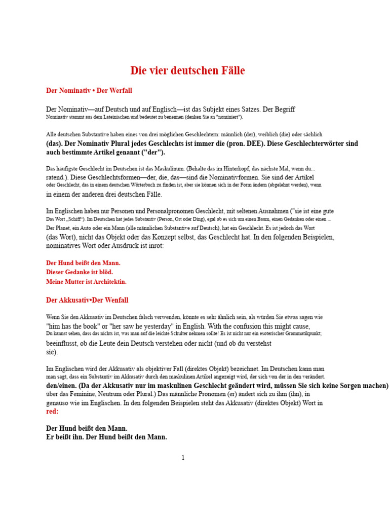 *Hinweis: Einige männliche Nomen fügen im Akkusativ und in allen anderen Fällen eine -en oder -n-Endung hinzu.