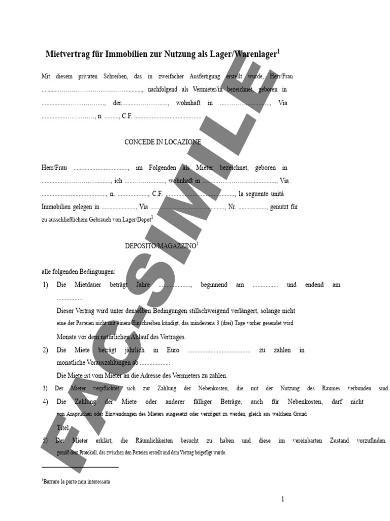 Vertrag Über Die Nutzung Eines Depots