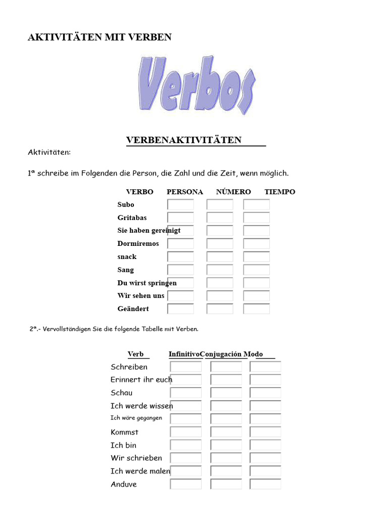 Aktivitäten Mit Verben