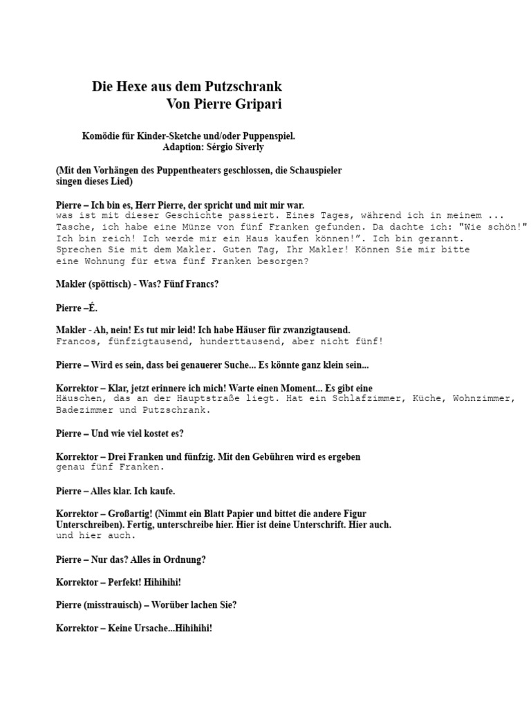 Text, der auf dem Märchen 'Die Hexe aus dem Schrank' basiert