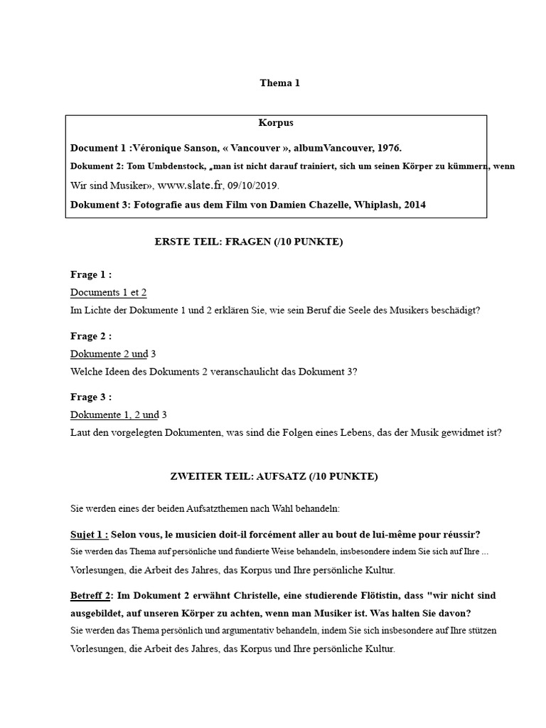 Im Lichte der Dokumente 1 und 2 erklären Sie, wie sein Beruf die Seele des Musikers beschädigt?