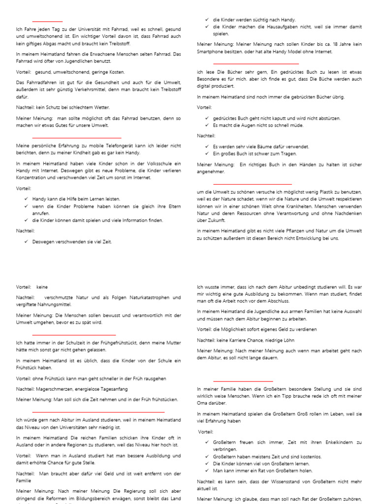 Nach meiner Meinung hat das Reisen im Sommer sowohl Vorteile als auch 14- ist zu viel Sport gesund/warum soll man Sport treiben.