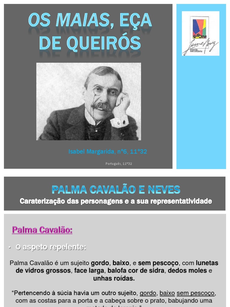 E ento Carlos, () quis saber do Palma Cavalo. () Somente deixara a literatura, tornara-se o facttum do Carneiro, o que fora ministro; levava-lhe a espanhola ao teatro pelo brao; e era um bom empenho na poltica. -Ainda h de ser deputado- acrescentou Ega. E, () ainda h de ser ministro. Captulo XVIII