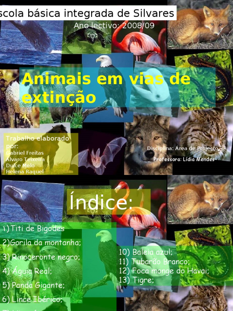 espécies em vias de extinção.