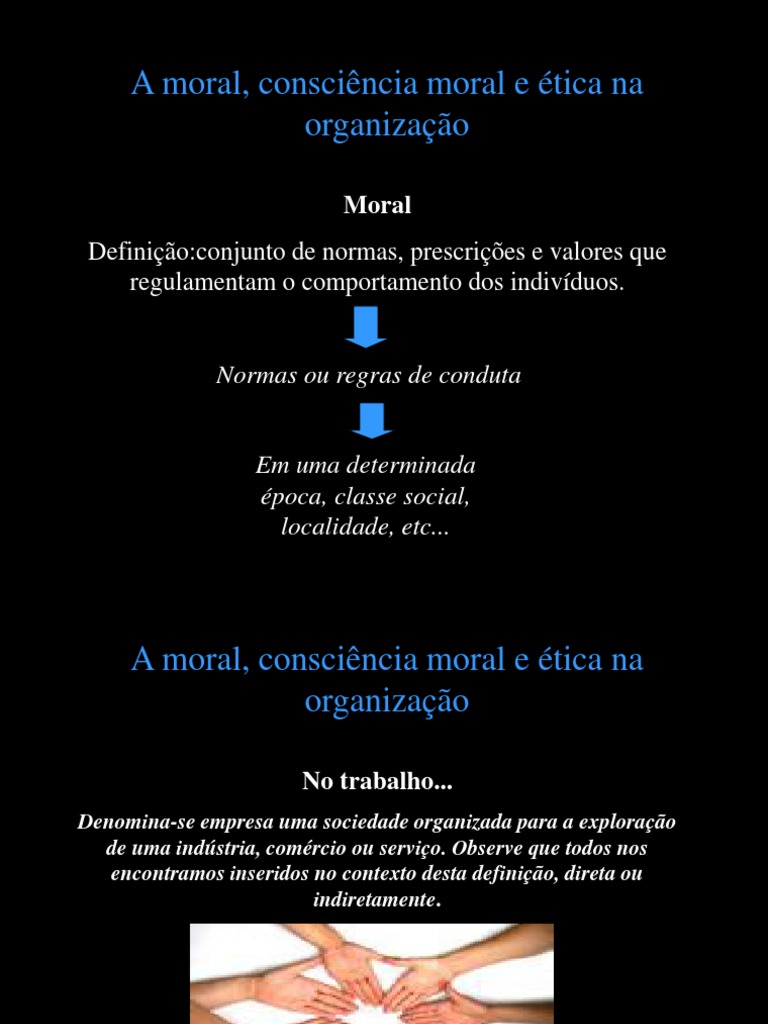 Moral Definio:conjunto de normas, prescries e valores que regulamentam o comportamento dos indivduos.