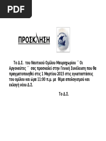 ΕΚΛΟΓΕΣ ΝΕΟΥ Δ.Σ. Ν.Ο.ΜΑΥΡΟΧΩΡΙΟΥ ΣΤΙΣ 1/3/2015